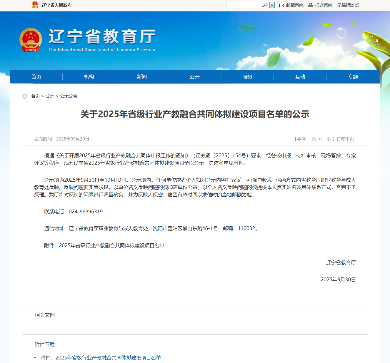 近日,辽宁省教育厅公示了2025年省级行业产教融合共同体拟建设项目名单。根据《关于开展2025年省级行业产教融合共同体申报工作的通知》(辽教通〔2025〕154号)要求,经院校自主申报、材料审核、现场答辩与专家评议等多轮程序,由九洲官方网站、鞍钢重型机械有限责任公司、鞍山职业技术学院共同牵头申报的“钢铁行业产教融合共同体”成功入选辽宁省2025年省级拟建项目。