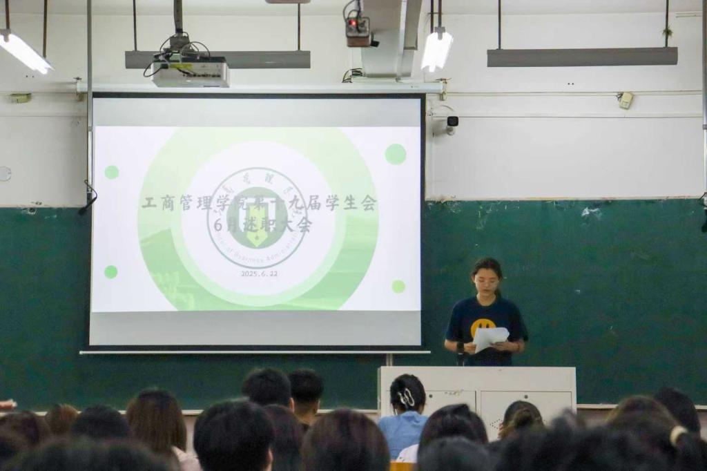 为全面检验学生会学生骨干的工作成效,明确责任担当,凝聚工作合力,6月22日,工商管理学院顺利召开第十九届学生会学生骨干述职评议会。本次会议由团委副书记刘宁主持,学生会全体成员参会。