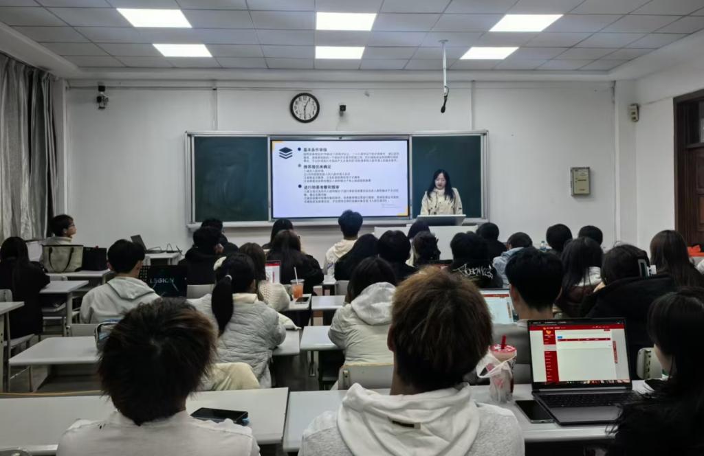 培训内容紧紧围绕团干部实际工作需求展开。第一项内容聚焦“智慧团建”系统操作,由分团委副书记郑旭婷主讲。她采用“理论+实操演示”的形式,重点拆解新生团员信息批量导入、团组织关系线上转接、“三会两制一课”活动记录上传等核心模块操作,同时针对“信息匹配失败”“转接流程卡顿”等常见问题,分享实用排查方法,并强调系统数据准确性对团员档案管理、团组织考核的重要意义。