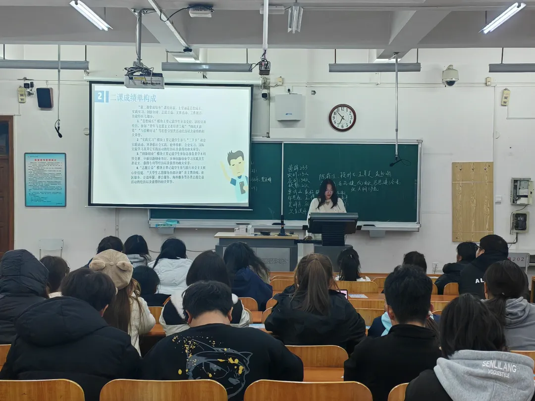 培训内容紧扣新生实际需求,系统讲解“第二课堂”的构成与“到梦空间”平台的核心功能。第一项内容由分团委副书记郑旭婷主讲,她着重阐述了实施“第二课堂成绩单”制度的重要意义,明确了其在学生综合测评、评奖评优乃至毕业求职中的作用,引导同学们从思想上重视第二课堂的学习与实践。