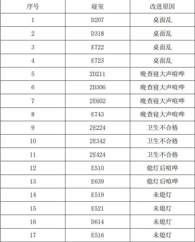 为进一步落实“好习惯工程”相关工作要求,扎实推进学院学风建设十项措施,营造安全、文明、积极、有序的育人环境,工商管理学院持续开展学生寝室内务检查与早、晚课巡查工作。现将第十一周检查情况通报如下: