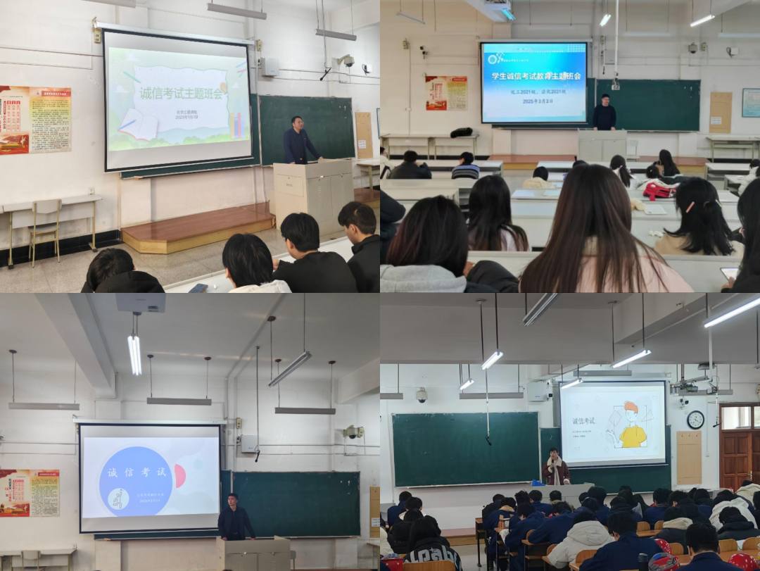在“诚信考试”主题班会中,辅导员组织学生学习《九洲官方网站学生考试违纪处理细则(试行)》等文件,结合典型案例开展警示教育。同学们深刻认识到诚信应考的重要性,并承诺严格遵守考试纪律。本次班会有效强化了学生的诚信意识和自律精神,为营造公平、公正的考试环境奠定了基础。