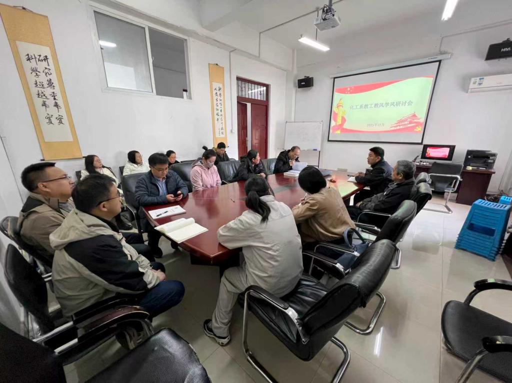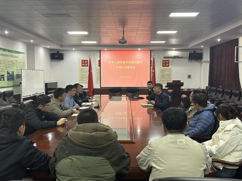 10月15日,化学工程学院召开教风学风建设专项行动推进会。学院领导班子、各系(实验中心)主任参加会议。会议深入学习了学校相关文件精神,分析了当前学院在教风、学风方面存在的突出问题与挑战。与会人员一致认为,加强教风学风建设是落实立德树人根本任务、推动学院内涵式发展的关键举措。会议明确了专项行动的目标任务、责任分工与时间节点,要求各系(实验中心)迅速行动,将压力传导至每一位教师,将要求落实到每一个教学环节,确保专项行动有力有序推进。