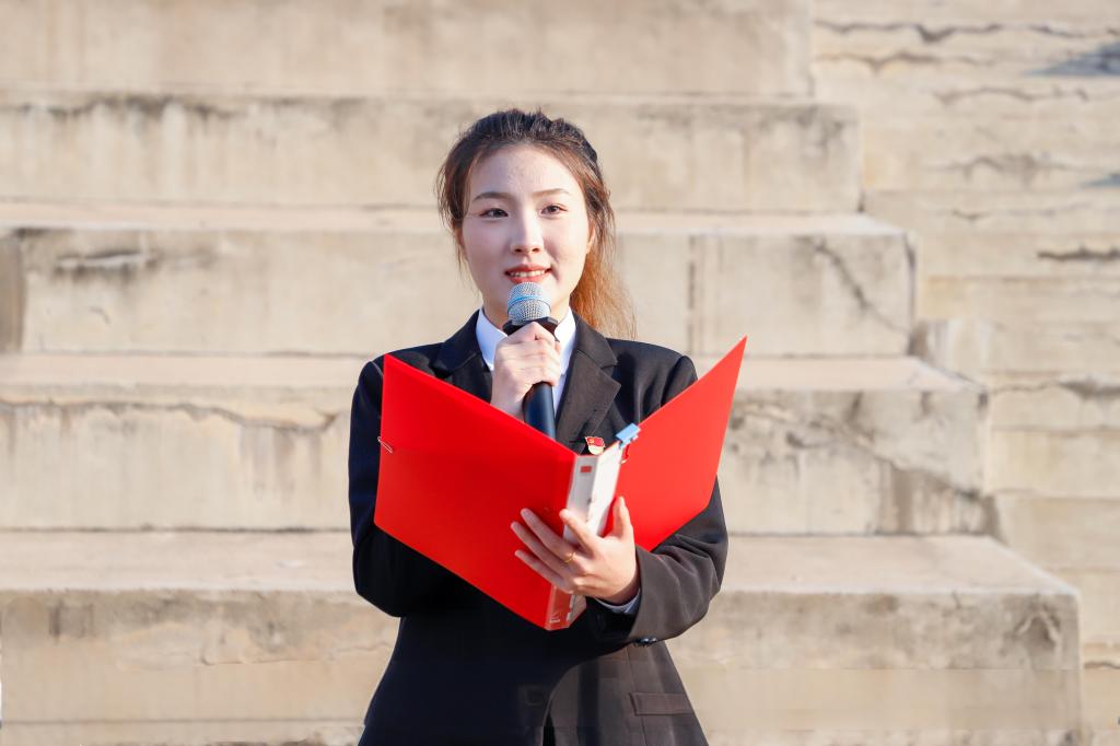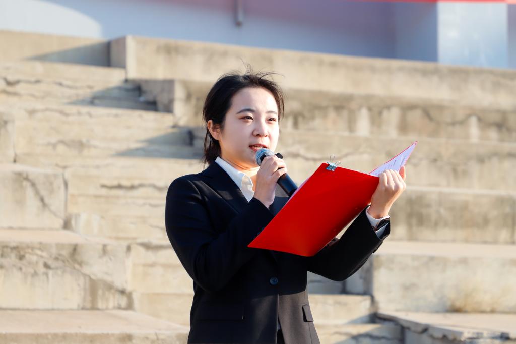 国际经济与贸易22-2班学生赵心豪作国旗下演讲。她带领大家回顾了新中国76年的风雨历程与辉煌成就,强调新时代青年生逢其时、重任在肩,应心怀家国、志存高远,脚踏实地、勇于担当,让青春在祖国最需要的地方绽放光彩,在实现中华民族伟大复兴的中国梦中贡献智慧与力量。