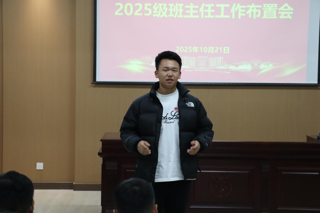 会议伊始,赵智博向新生介绍了8名班主任的基本情况,明确班主任核心职责——在思想建设、学业发展等领域为学生提供精准指导,是助力大学生健康成长的“指导者”与“引路人”,对班级学风、班风建设起着关键引领作用。同时,他勉励同学们要主动沟通、勤于请教,尽快适应大学节奏,明确目标方向,在学院这个温暖的大家庭中勇于探索、不断进步。张国华从师生沟通与规划支持、学风建设问题与要求、工作配合与落实三个方面,既指出了当前教学和管理中存在的实际问题,也提出了具体改进措施,强调学生干部要积极配合班主任,共同推动班级建设和学风提升。随后,8位班主任结合各自专业实际情况及学科特色,在学业发展领域为新生开展指导,强调新生要聚焦学习专业知识,努力提升自身技能,养成良好的学习与阅读习惯,树立正确就业观念,以专业所长践行青春担当。最后,学生代表表态,“作为学生干部,我们一定会跟班主任老师打好配合,把班级各项工作做好,共同推进班级学风建设与管理水平不断提高。”