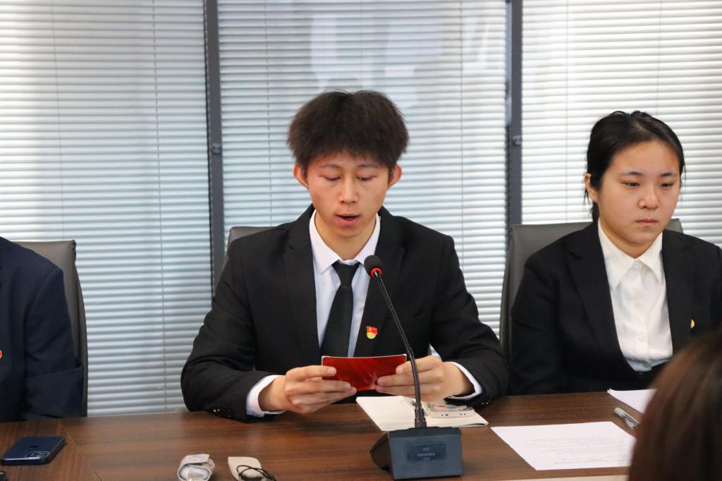 接着,经法学院学生第二党支部书记张鹏飞从支部建设路径、品牌打造成果等方面介绍了支部在思想引领、先锋示范等方面的特色做法。他以“传承红色精神 勇担时代使命”为主题为现场党员上主题党课,结合辽宁“红色六地”精神,通过邀请支部中六位来自红色六地的党员同志作家乡红色文化分享,深刻阐述红色精神的当代意义。他强调,青年党员要把红色基因融入血脉,把初心使命落实到日常学习和实际行动中,在服务师生、服务集体中锤炼担当品质。