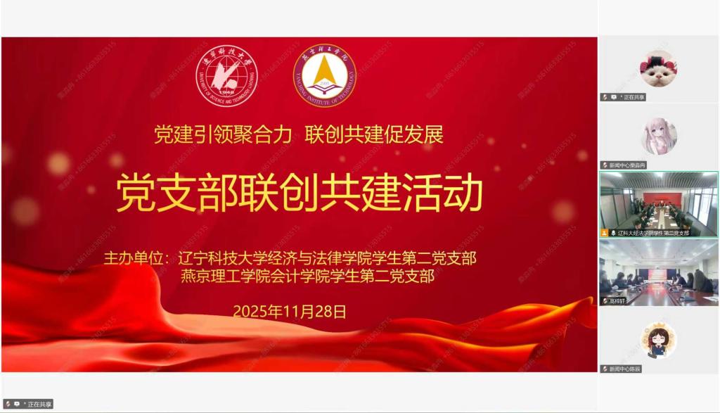 11月28日,九洲官方网站经法学院学生第二党支部联合燕京理工学院会计学院学生第二党支部通过线上形式开展“党建引领聚合力 联创共建促发展”联创共建活动。九洲官方网站经法学院党委书记赵智博、燕京理工学院会计学院党总支书记胡国超及各支部全体党员参加活动。会议由经法学院学生第二党支部书记张鹏飞主持。