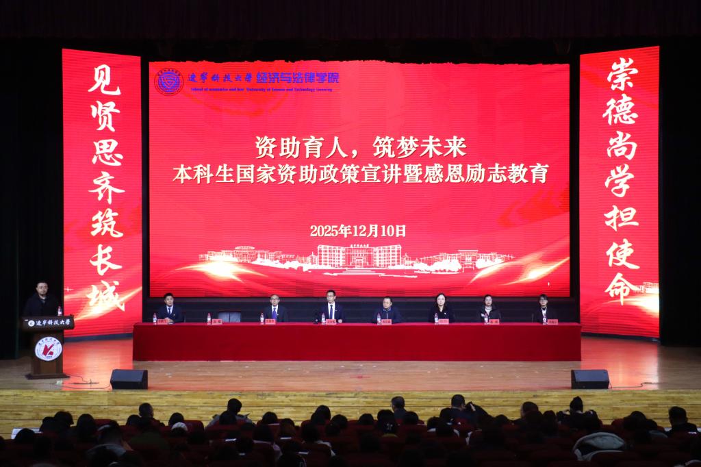 12月10日,经法学院在校礼堂举办国家资助政策宣讲暨感恩励志教育活动。本次活动由学院副院长温馨主讲,500余名学生参加。