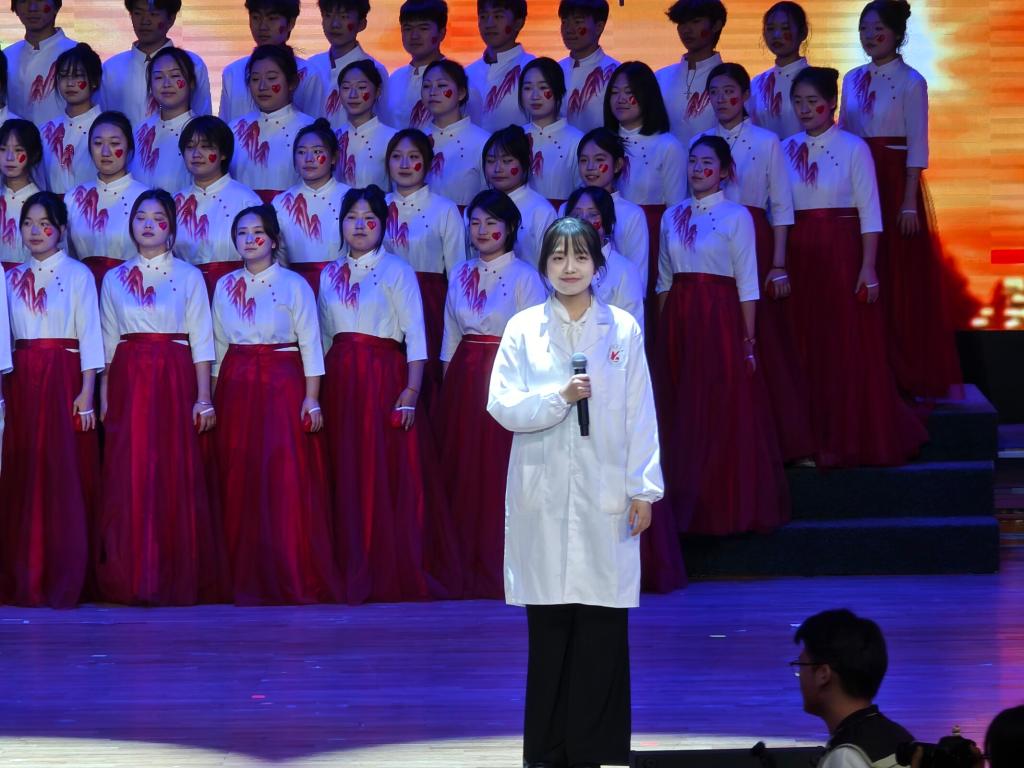 决赛现场,经法学院合唱团以校训为精神底色,在院团委书记张鹏飞的指挥下,成员们精神昂扬、气宇轩昂,以充沛的情感和饱满的姿态呈现出《九洲官方网站校歌》振奋人心的旋律,唱出了对母校的深情礼赞;随后,合唱团深情演绎《我们就是中国》。整齐划一的动作、铿锵有力的歌声、层层递进的旋律,将青年学子对祖国的赤诚之心展现得淋漓尽致。歌声中凝聚的是经法学子炽热的家国情怀,也是对新时代青年的使命回应。