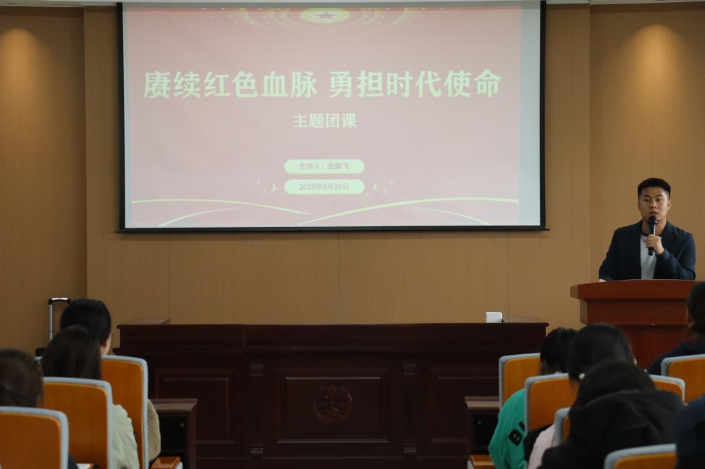 学院团委书记张鹏飞为学员们上“赓续红色血脉 勇担时代使命”主题团课。他结合辽宁“六地”红色文化底蕴,教育引导团员青年将个人学习成长与国家社会发展需要紧密相连,以红色精神砥砺初心,以报国志向引领学风建设,培育良好学习、生活、运动、修身习惯,在求知奋进的路上勇担使命,不负韶华,让青春在社会主义现代化建设的伟大实践中绽放光彩。