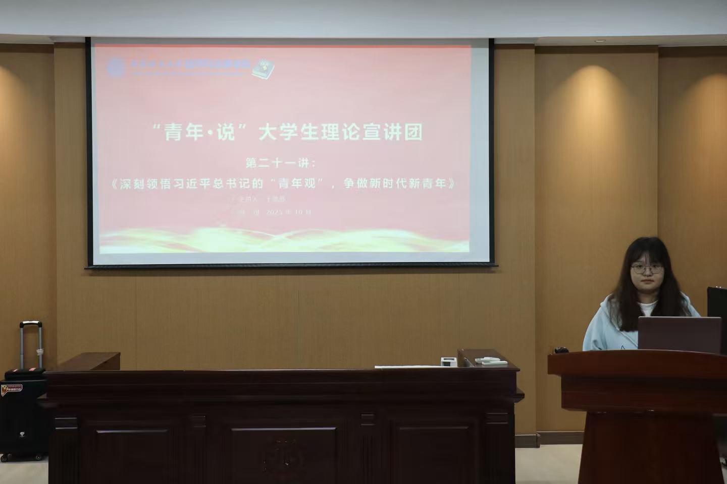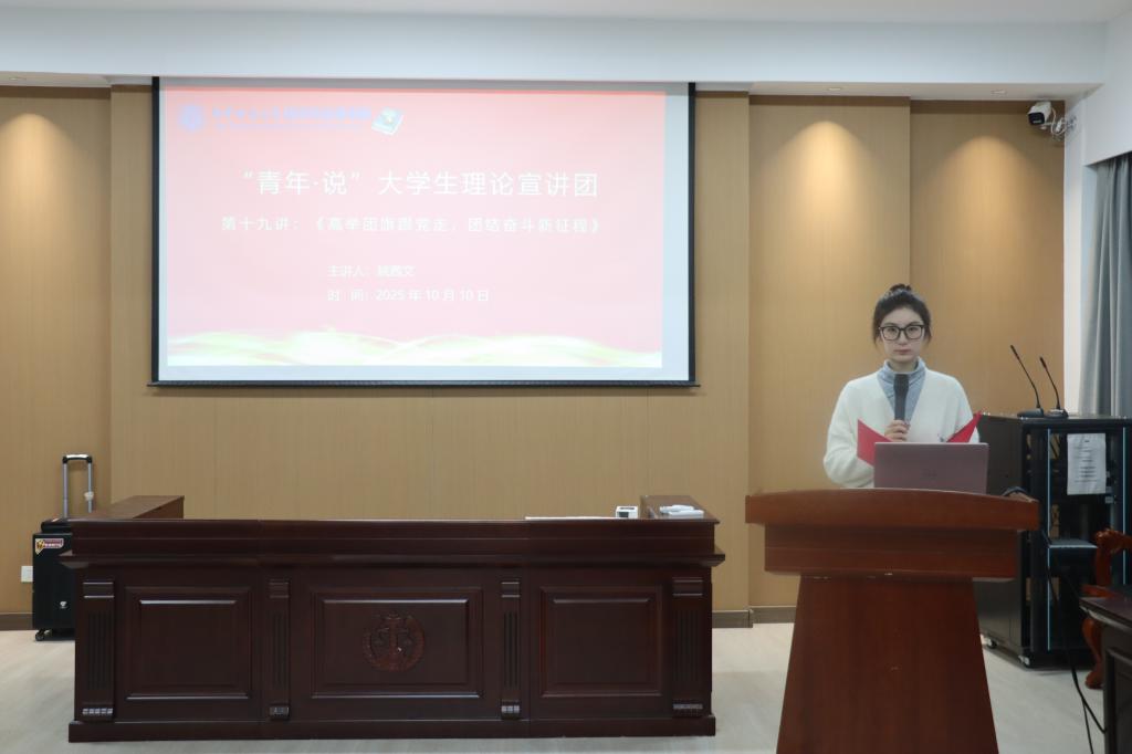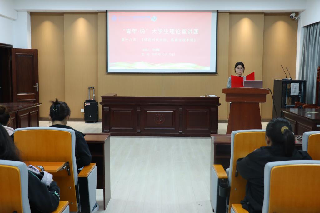 学院“青年·说”大学生理论宣讲团成员申佳鹭和姚茜文分别以“锚定时代坐标,练就过硬本领”“高举团旗跟党走,团结奋斗新征程”为主题进行宣讲,从多维度阐释新时代青年的成长路径与责任担当,倡导学子在实践中锤炼自我;同时深入剖析“共同富裕”的时代内涵,强调青年应立足小事、积蓄力量,激发了青年学子投身强国建设、勇担时代使命的热情。