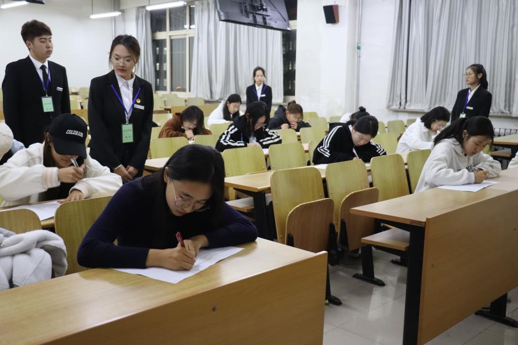 在笔试环节,考生们全神贯注、认真审题,在缜密思考后执笔作答。一字一句间,凝聚着他们对学生工作的热情与期待;整洁的卷面与严谨的答题,展现出同学们真诚的态度与扎实的专业素养。