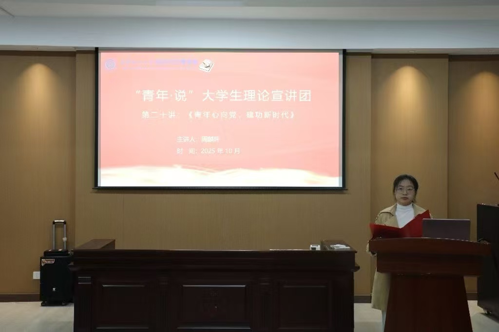 近日,经法学院于博识楼A402开展“青年·说”大学生理论宣讲。此次宣讲由学院“青年·说”大学生理论宣讲团成员、研究生第四党支部书记周麟坪担任主讲人,共计69名团员青年参加了宣讲会。