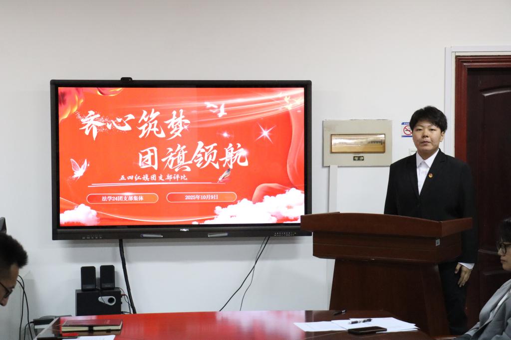 随后进行的五四红旗团支部答辩由法学24班任芷瑶主持,共有来自23和24级的7个团支部参与。各团支部书记围绕思想组织建设、实践文体活动、特色团建项目以及综合素质提升等方面,结合工作数据与图片展示进行汇报。他们全面阐述了团支部在学习实效转化、组织管理、集体精神塑造和青年贡献度等方面取得的成果,充分展现了经法青年团员的活力与担当。院党委书记赵智博在点评讲话中指出,本次答辩会不仅是展示成果的平台,更是各团支部互相学习、共同进步的良好契机。各团支部要互学互鉴、取长补短,将“他山之石”转化为提升自我的坚实动力,凝聚支部发展共识,培育有理想、有担当、有行动力的经法青年,为党的事业培养源源不断的后备力量,让经法学子的奋进之姿在新时代征程中绽放华彩。