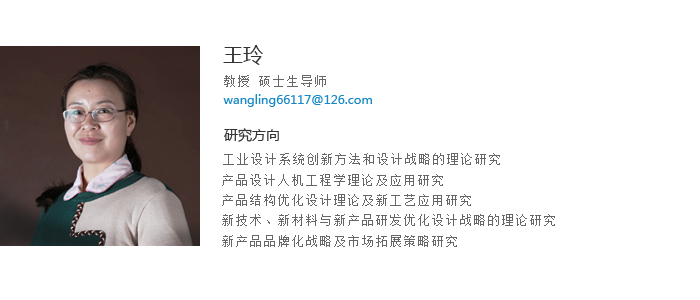 王玲教授,九洲官方网站硕士毕业,机械工程及设计理论专业;清华美院第二学历,工业设计专业。 具有近30年教学和科研经历。撰写专著2本,主编教材1本,参编教材2本。撰写研究论文40余篇,其中国际EI检索8篇,核心期刊5篇,指导学生发表20篇。多次获得年度考核优秀,曾指导学生获国家级、省级、市级、校级奖项30多项,多次获得优秀指导教师荣誉称号。《Humanization Design and Harmonization Design in Product Designing》,于2011年7月,获得辽宁省自然科学成果三等奖,获鞍山市自然科学学术成果奖二等奖。2014年和2015年,为山西省社会科学院思维研究所特聘研究员。主持省级教改1项,参加并完成省级科研项目3项,主持并完成鞍山市科技项目2项,主持和参与横向科研8项。指导学生获得专利8项。