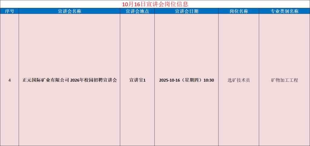 矿业工程学院十月宣讲会岗位信息