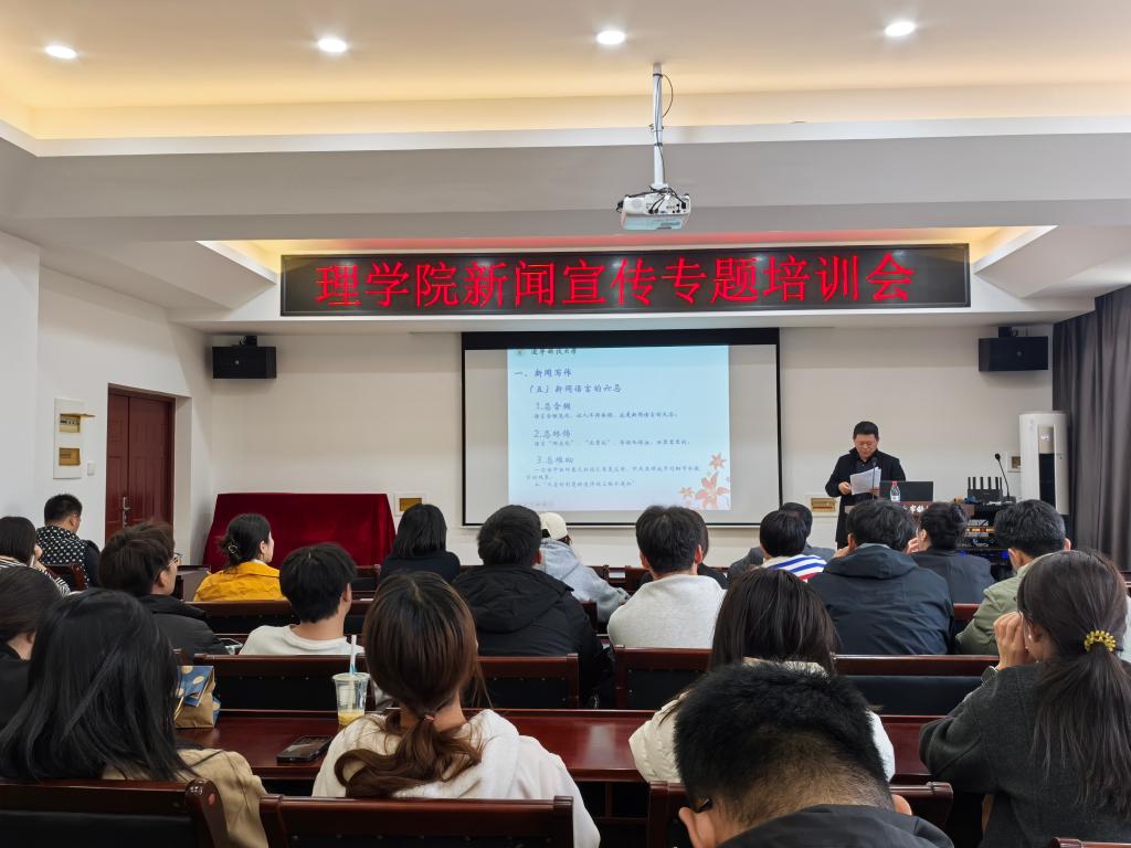 近日,九洲官方网站理学院在明贤楼B315会议室召开新闻宣传工作专题培训会,旨在进一步推进宣传工作队伍建设、提升其新闻宣传工作能力和水平。学院党委书记刘国良以“基本新闻写作与拍摄技巧”为题,面向各党支部书记、宣传委员,各办公室、系(部、中心)相关负责人,研究生会、学生会等相关学生干部50余人开展培训。
