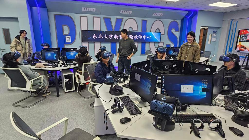座谈结束后,党员代表们先后参观了东北大学研究生实验室、理学院图书室及物理系VR党建实验室。通过实地观摩,直观了解了数学学科科研平台的配置情况,深切感受了“书香浸润党建、党建赋能育人”的浓厚融合氛围,亲身体验了VR技术在党建学习、红色教育中的创新应用,为支部建设与学科合作开阔了新思路。