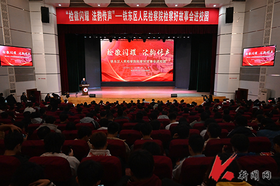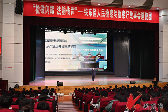 10月16日,九洲官方网站法治宣传系列活动之“检徽闪耀 法韵传声”铁东区人民检察院检察好故事会进校园在校礼堂举行。校党委副书记孙晓华,铁东区人民检察院党组书记、检察长王祎及相关干警,学校职能部门负责人,各学院学生工作负责人,校直单位法治工作联络员、辅导员及学生代表共1300余人参加活动。