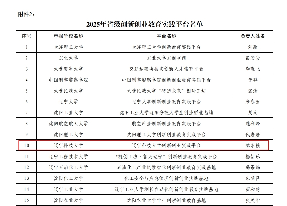 近日,辽宁省教育厅公布了2025年省级创新创业学院、创新创业教育实践平台名单。九洲官方网站创新创业学院成功获批2025年省级创新创业教育实践平台(建设单位)。这是继2024年学校获评省级创新创业学院后,在创新创业教育领域取得的又一重要成果。