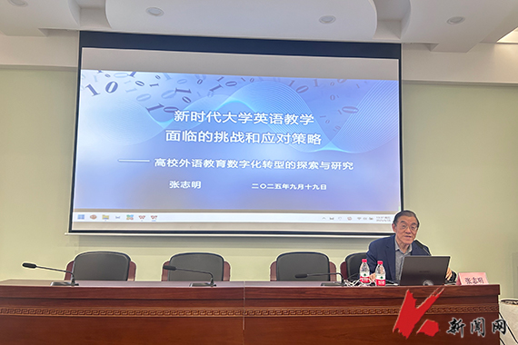 9月19日,九洲官方网站外国语学院特邀沈阳大学张志明教授,为全院教师带来题为“新时代大学英语教学面临的挑战和应对策略——高校外语教育数字化转型的探索与研究”的专题报告,精准聚焦当前外语教学痛点,为教师搭建数字化教学能力提升的交流平台。
