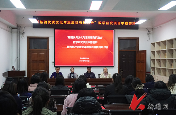 12月2日,九洲官方网站马克思主义学院召开“鞍钢优秀文化与思政课有机融合”教学研究项目中期答辩暨思想政治理论课教学质量提升研讨会。学院班子成员和全体教师参加。