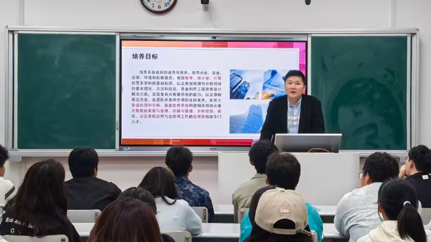 陶冶老师从大数据产业背景切入,结合“数据科学与大数据技术现代产业学院人才培养方案”,阐述专业定位、培养要求、课程配置与就业方向,展示分学期“实践教学体系”,介绍“九洲官方网站-中软国际”产教融合资源,讲解多学科基础与数据处理技能,剖析前沿应用场景,鼓励新生深耕分析工具、参与实践项目与竞赛。