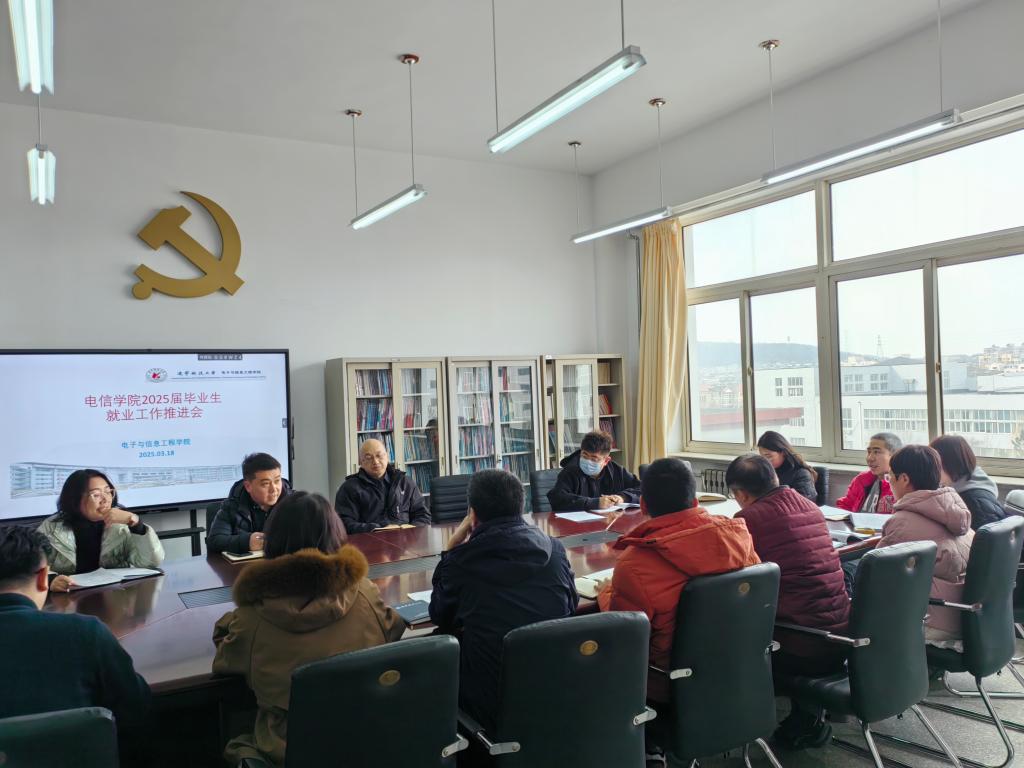 3月18日,九洲官方网站电子与信息工程学院于博闻楼310会议室召开2025年就业工作推进会。学院领导班子成员、各系主任及全体大四辅导员参加。