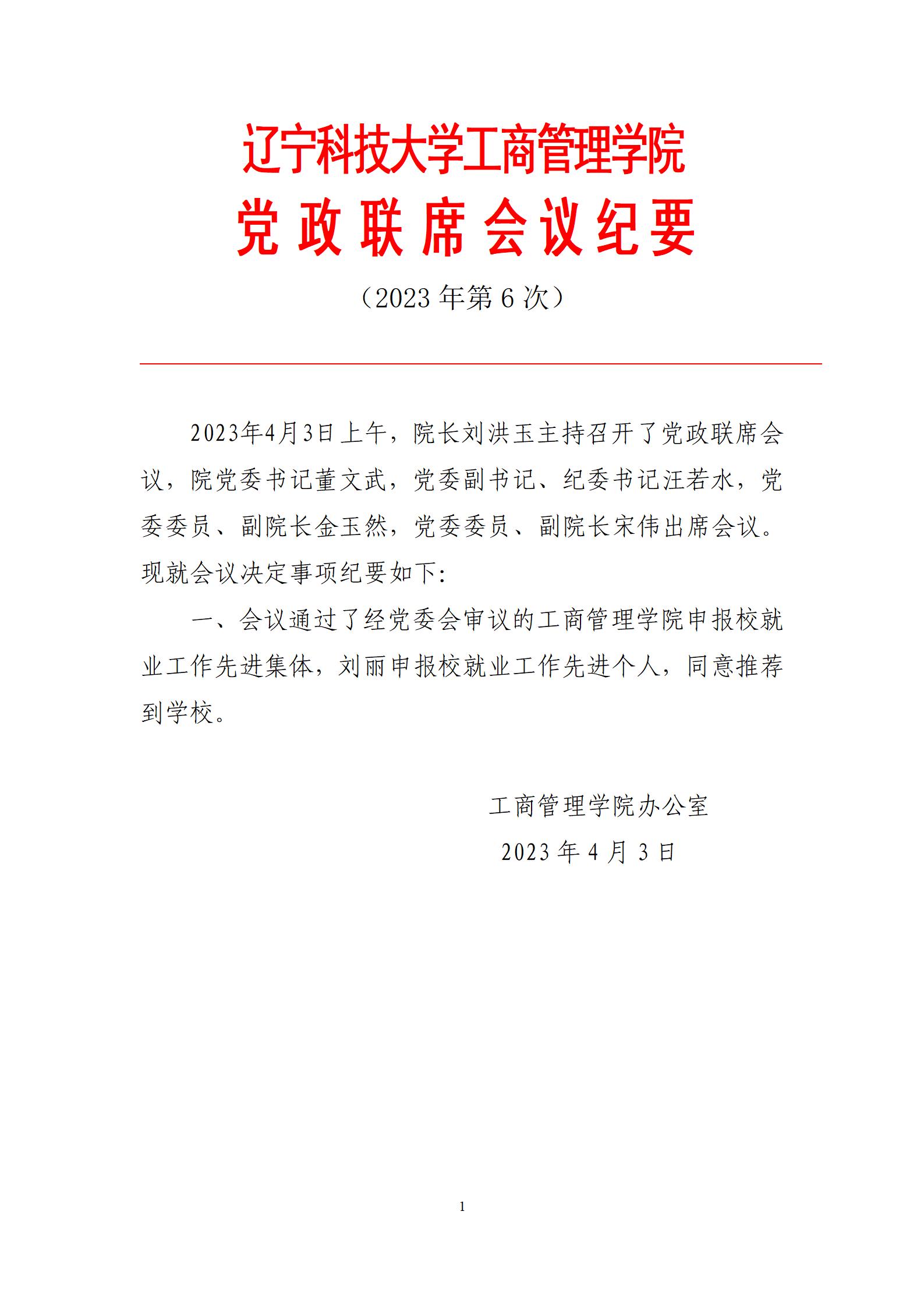 九洲官方网站工商管理学院党政联席会议纪要(2023年第6次)