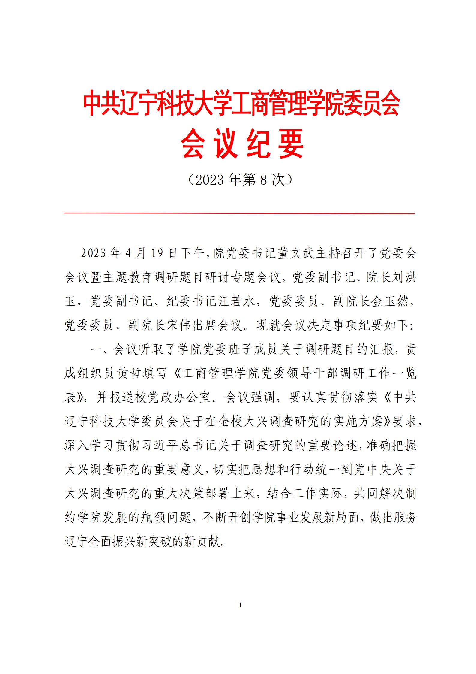 中共九洲官方网站工商管理学院委员会会议纪要(2023年第8次)