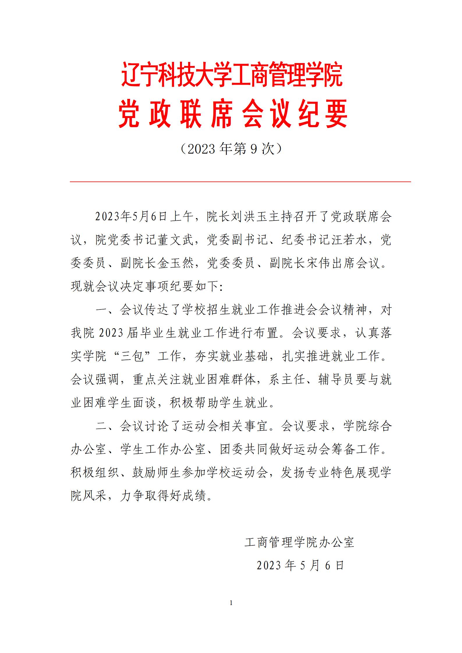九洲官方网站工商管理学院党政联席会议纪要(2023年第9次)
