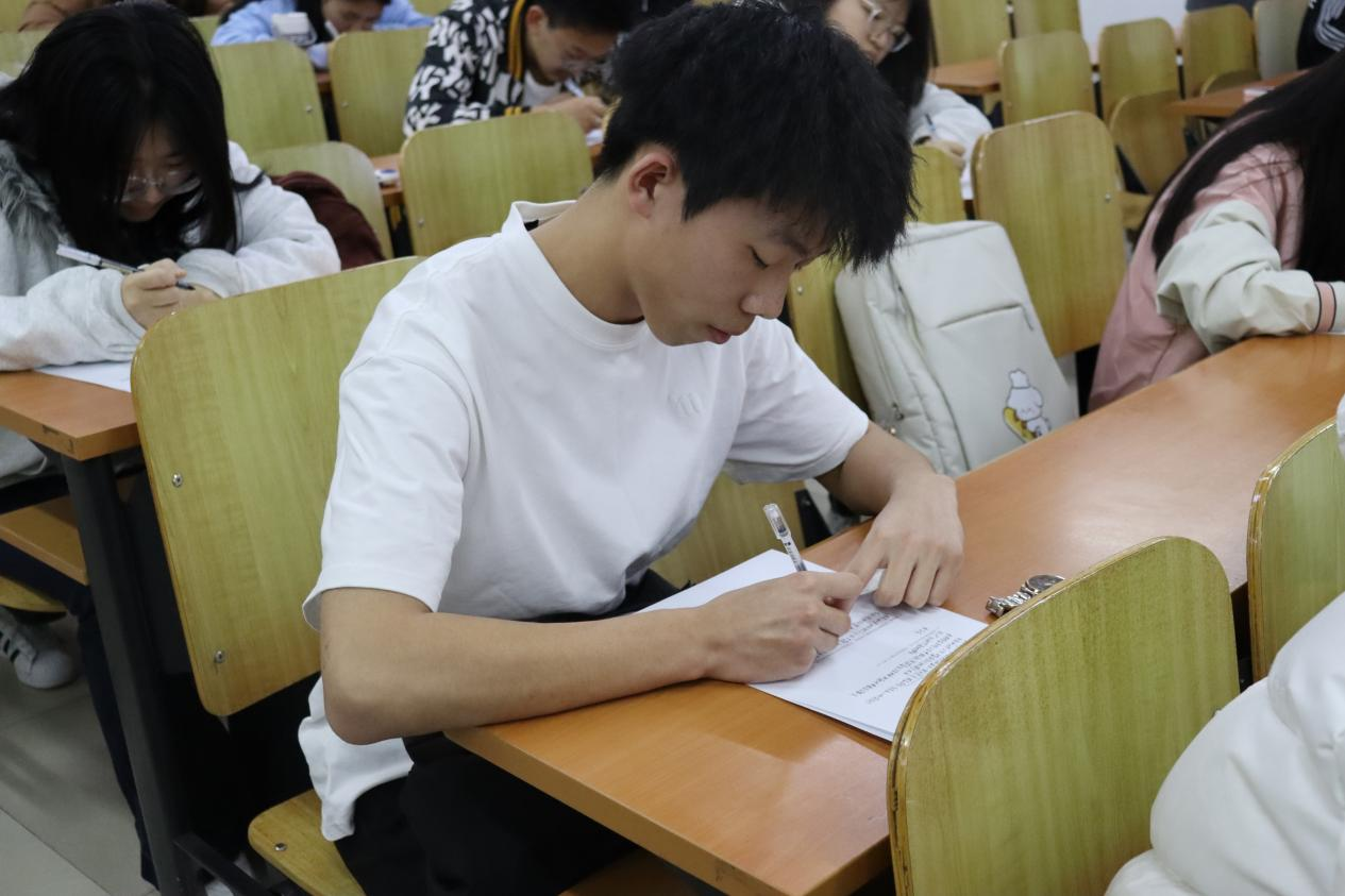 3月13日,纳新笔试在博学楼C402教室举行。 笔试时长60分钟,内容涵盖观点论述、活动规划、问题解决等方面,全面考察同学们的综合素养,重点评估书面表达、逻辑思维以及应变决策能力。笔试现场秩序井然,监考人员认真负责,同学们沉着应考,展现出良好的精神风貌。