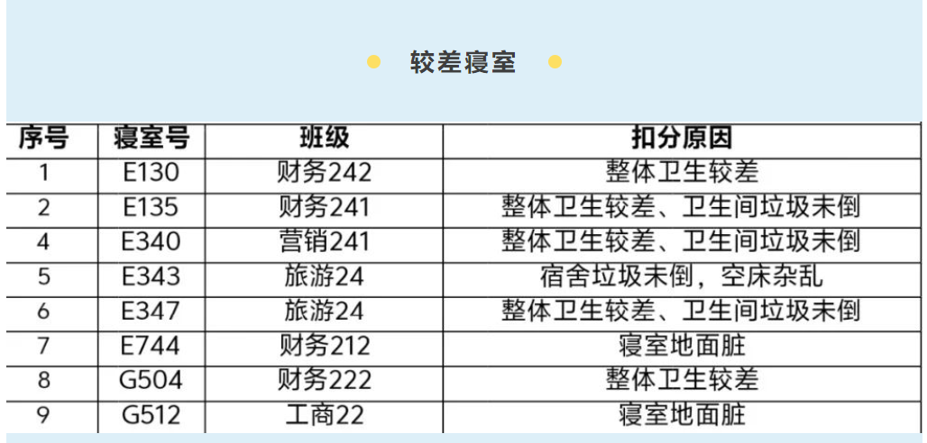 三比一促一传承 | 工商管理学院第十二周宿舍卫生情况简报