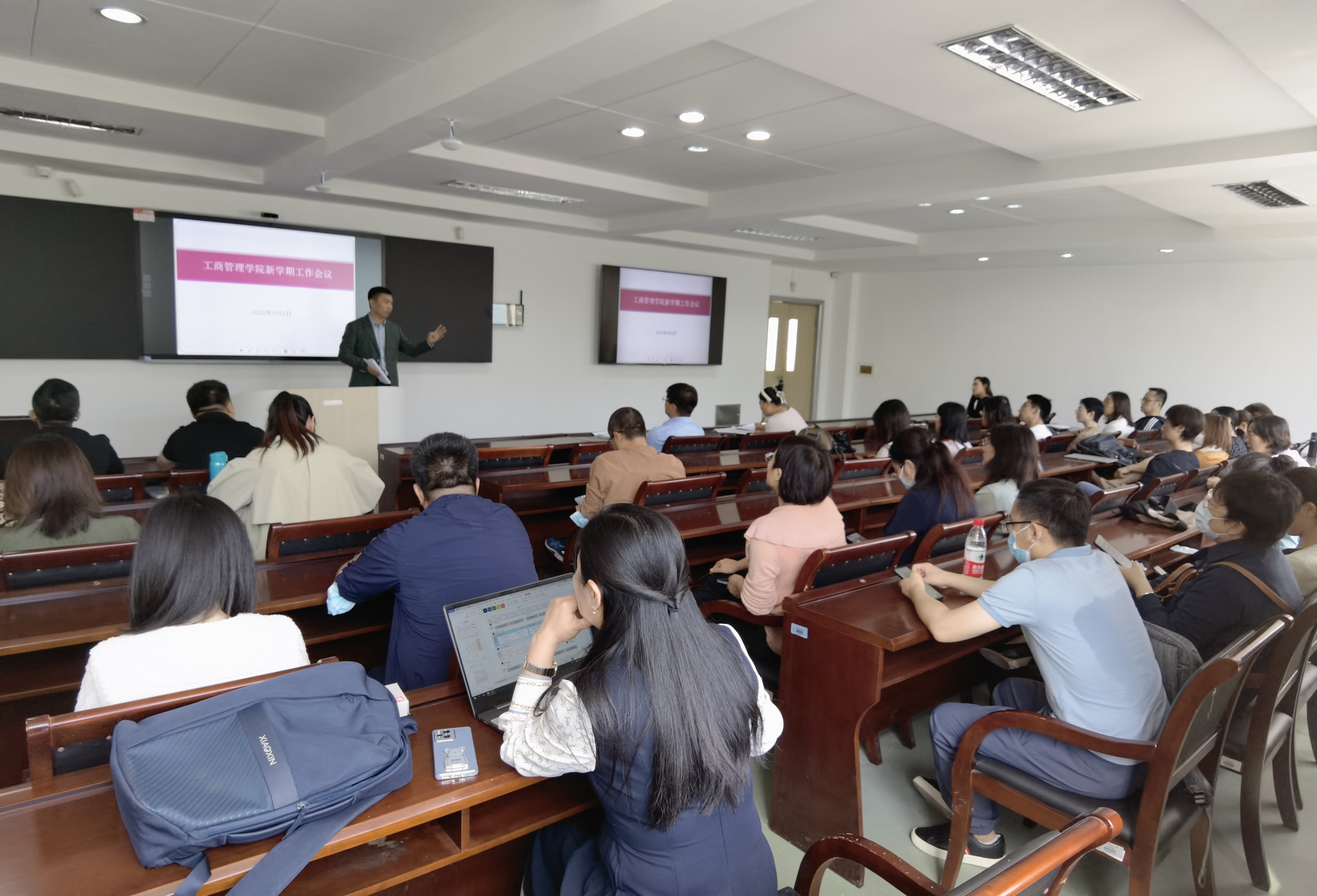 9月6日,九洲官方网站工商管理学院召开新学期工作会议,学习贯彻中共九洲官方网站三届八次全委(扩大)会暨新学期干部大会会议精神,总结学院上半年工作成绩,部署下半年重点工作任务。学院领导班子、全体教职工参加了会议。