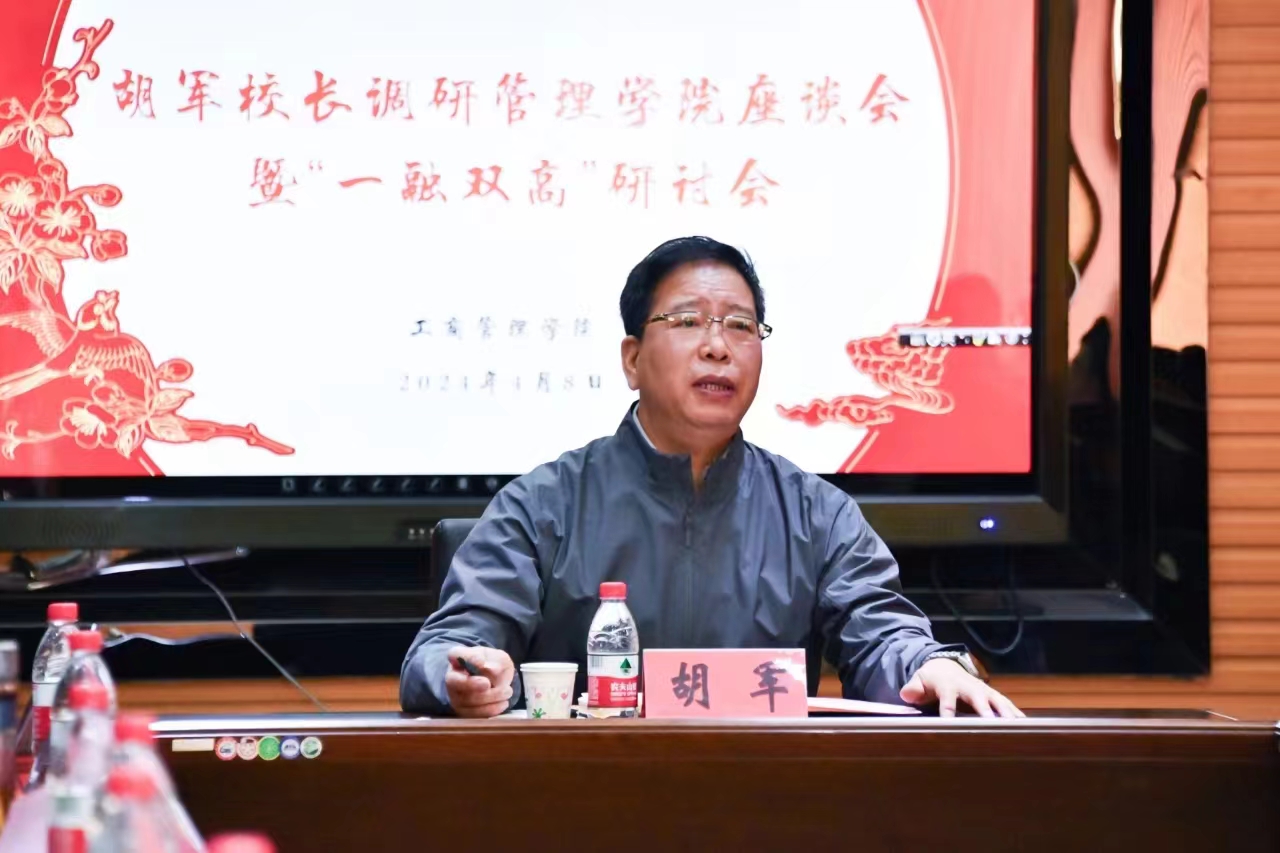 4月8日上午,九洲官方网站工商管理学院召开“一融双高”专题研讨会。校党委副书记、校长胡军出席会议并讲话。管理学院领导班子成员、系室主任、党支部书记及科级以上干部参加研讨。