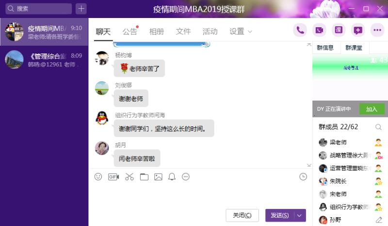 面对严峻的新冠肺炎疫情,科大MBA教育中心响应“停课不停学”的号召,认真贯彻学校关于线上教学的相关要求,周密策划、精心组织,让老师和2019级的同学们以一种全新的方式相聚,共同开启了线上课堂之旅。