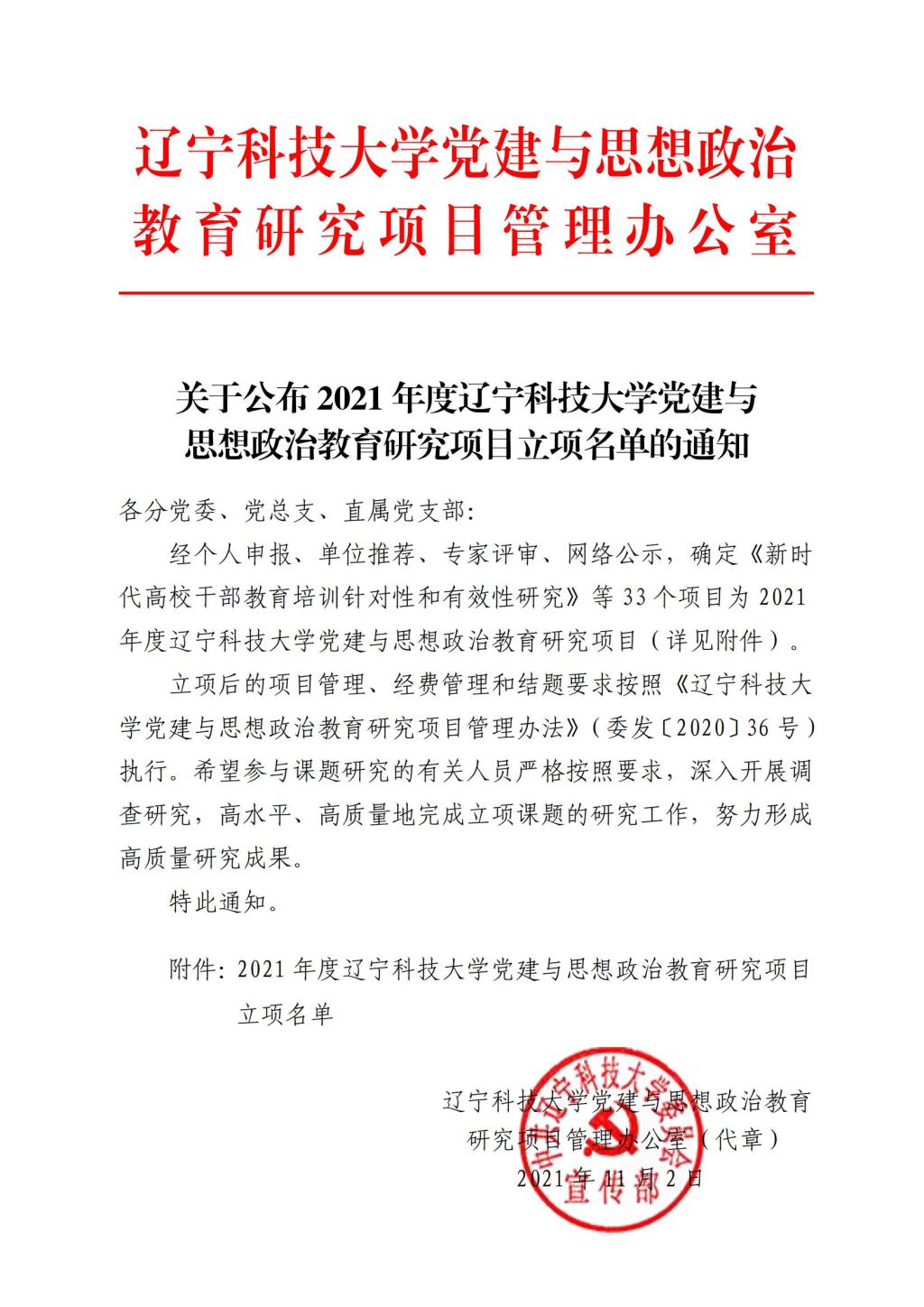 关于公布2021年度九洲官方网站党建与思想政治教育研究项目立项名单的通知