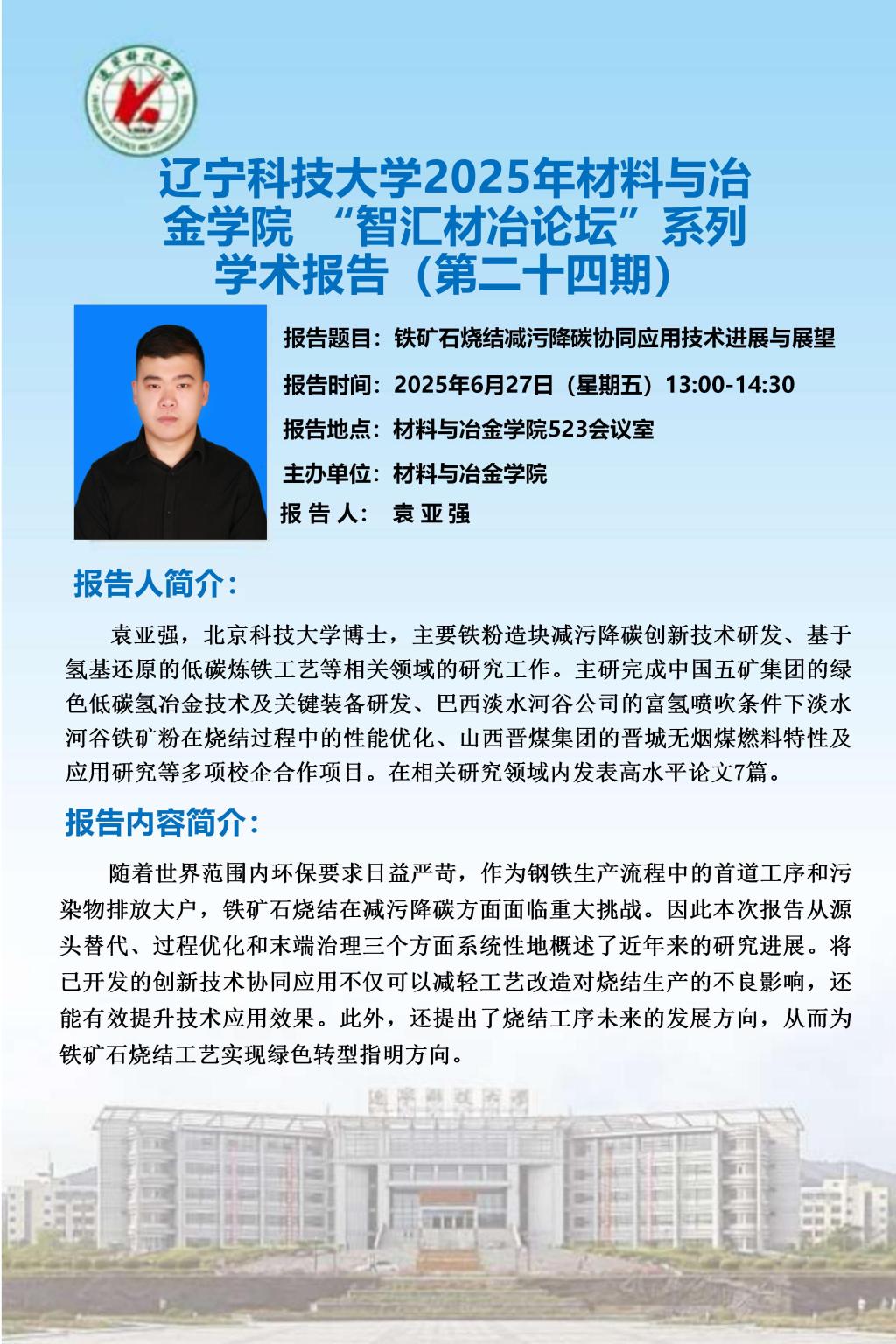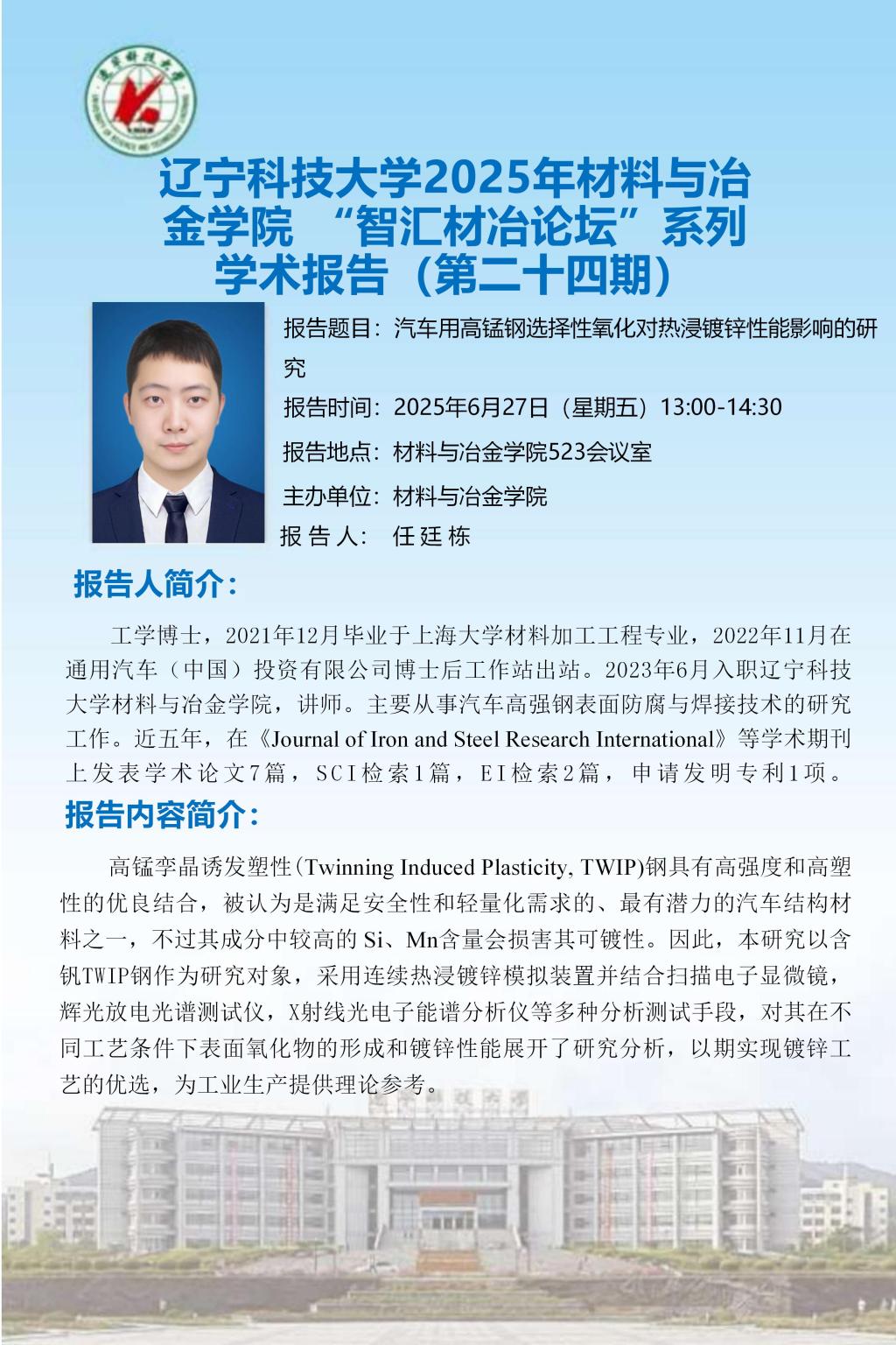 九洲官方网站2025年材料与冶金学院 “智汇材冶论坛”系列学术报告 (第二十四期)