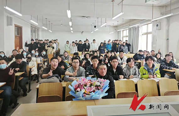 课堂上,李世隆声情并茂地讲解了“邓小平对社会主义本质概括的科学内涵”一课,学院教师与学生共同聆听学习。课后,学生向李世隆献花,课代表李涛代表同学们发言,向李世隆表达敬意和祝福。李世隆表达了对讲台的不舍和对全体师生的感谢,并结合个人心路历程,送给师生24字建议:择业从善、尊重领导、面向阳光、做好当下、惜福知足、善施乐道。