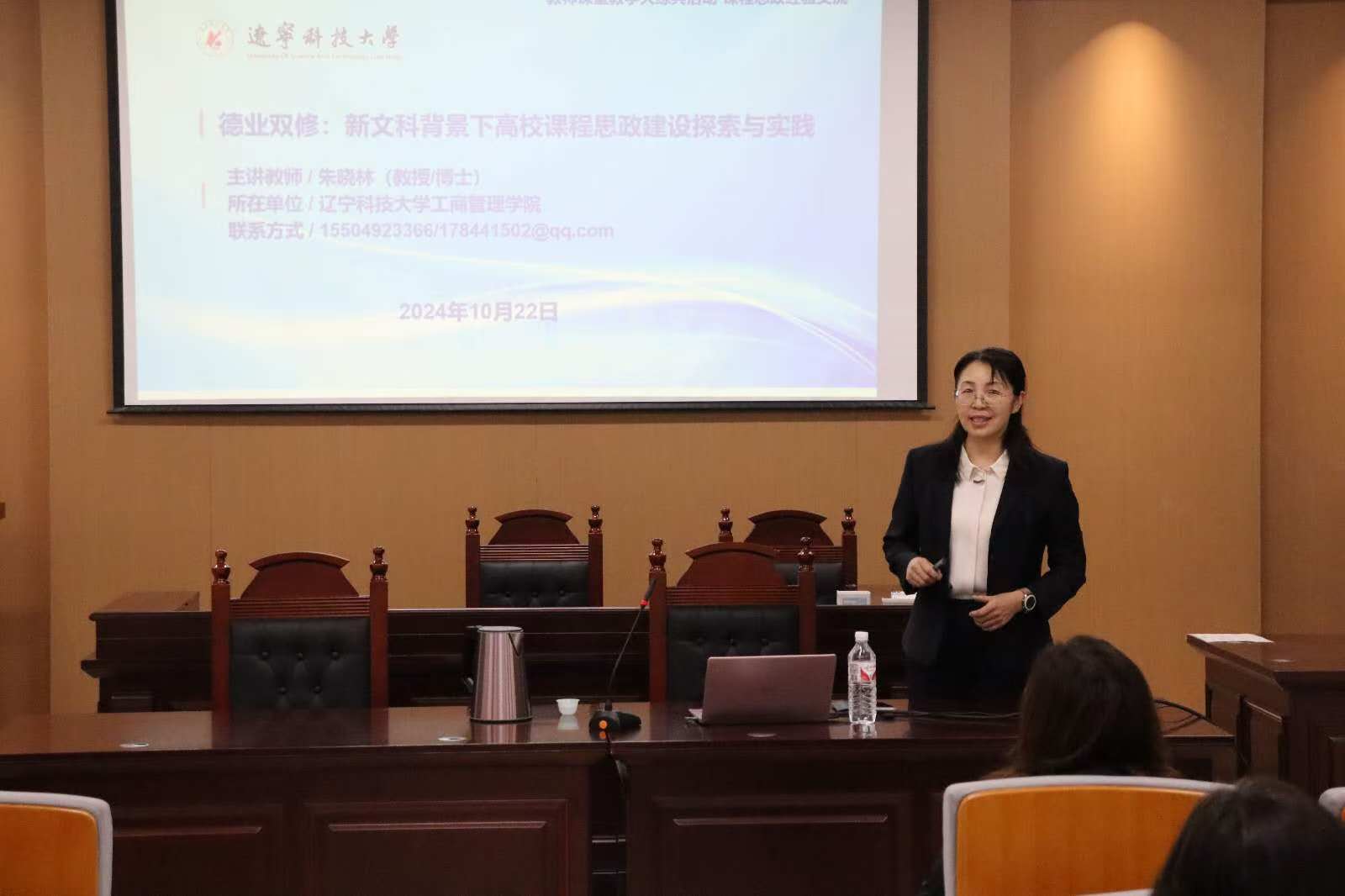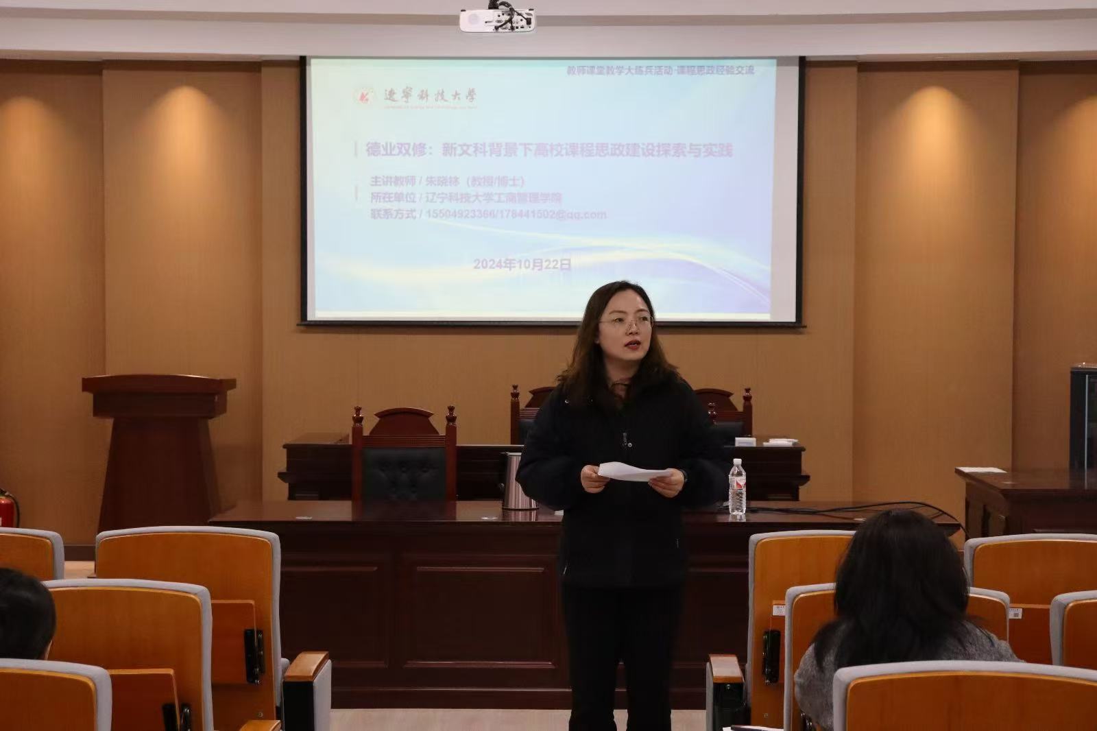 10月22日,经法学院邀请九洲官方网站工商管理学院教授朱晓林于博识楼A402模拟法庭作课程思政经验交流报告。