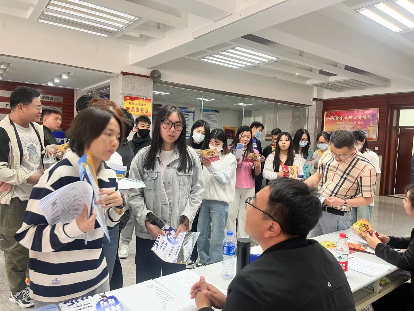为了促进学生就业,5月9日,由经法学院与管理学院联合举办的“一‘面’倾心,‘职’击未来”2023届经管类毕业生专场双选招聘会于大学生就业创业指导服务中心举行。