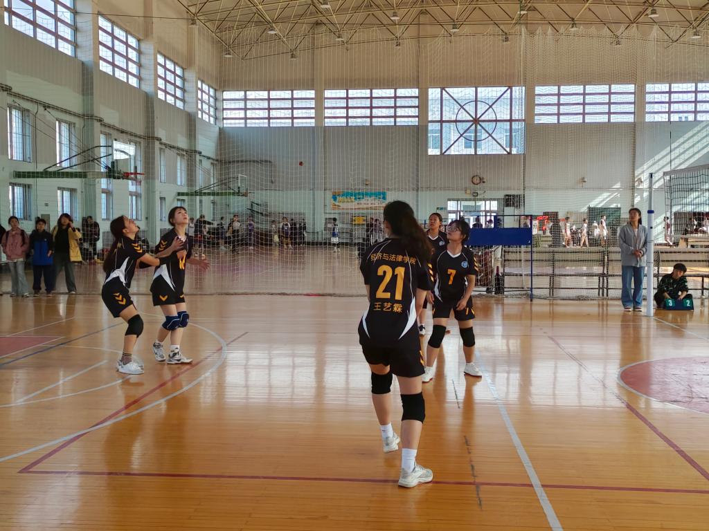 最终,经法学院女排姑娘们气势如虹,斗志昂扬,获得九洲官方网站2023年学生排球赛季军。据悉,这是我院近年来在此项赛事中取得的最好成绩。比赛的胜利离不开队员们的奋勇拼搏,也离不开学院老师、同学们的鼓励与支持。在整个比赛过程中,经法学院党委书记赵智博、团委副书记张鹏飞亲自到现场进行指导,经法学院第十八届团委、学生会全体成员到场为女排姑娘们加油助威。