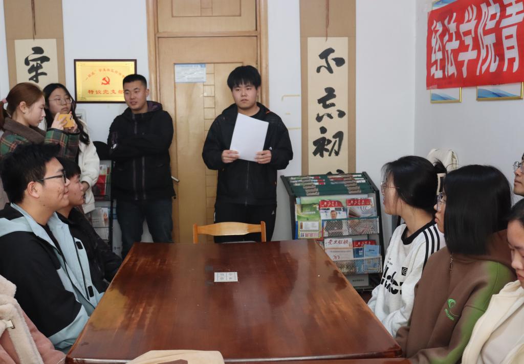 3月29日,经法学院于知行居103党团活动室开展“一站式”学生社区沙龙--专业知识导航未来职场主题活动。本次活动由学院学生会生活权益部干事申佳鹭主持,金融科技22-2刘浩辰作学习经验分享,经法学院共计18名2023级本科生参加活动。