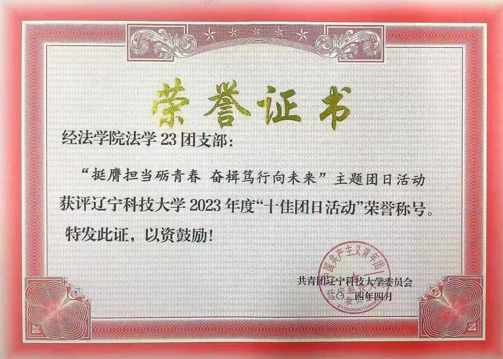 在社会实践和志愿服务方面,他一直以“有为、担当”为工作主旨,以“志愿服务”为工作抓手,带领大家将理论与实践紧密结合。他积极参与学院“小红帽”志愿服务活动,带领团员青年、法律协会成员定期深入南华街道化北社区、红岭街道中港花园社区、鞍山市“梦想之家”等地开展普法宣传活动,为社区居民在法律问题上答疑解惑,服务覆盖3000余人次。作为法律协会负责人,他多次组织参与模拟法庭系列活动。支部团员青年也在他的号召下,积极参与“返家乡”、扬帆计划、把我的大学带回母校、暑期“三下乡”等社会实践活动,真正做到了“实践育人成果好”。法学23班同时荣获九洲官方网站2024年度“学雷锋志愿服务先进集体”。