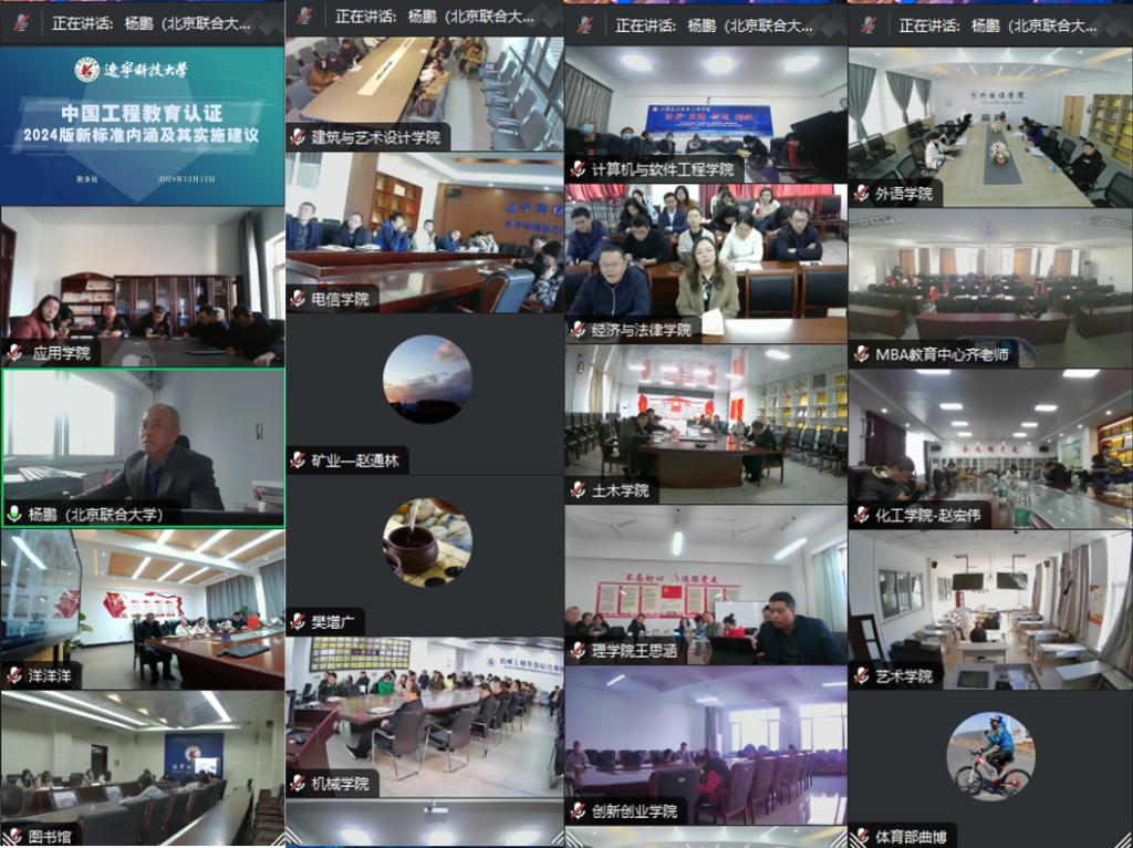 12月12日,九洲官方网站邀请北京联合大学杨鹏教授做工程教育专业认证培训,主题为“中国工程教育认证2024版新标准内涵及其实施建议”,全校各学院院长、教学院长、专业负责人及相关教师参会。