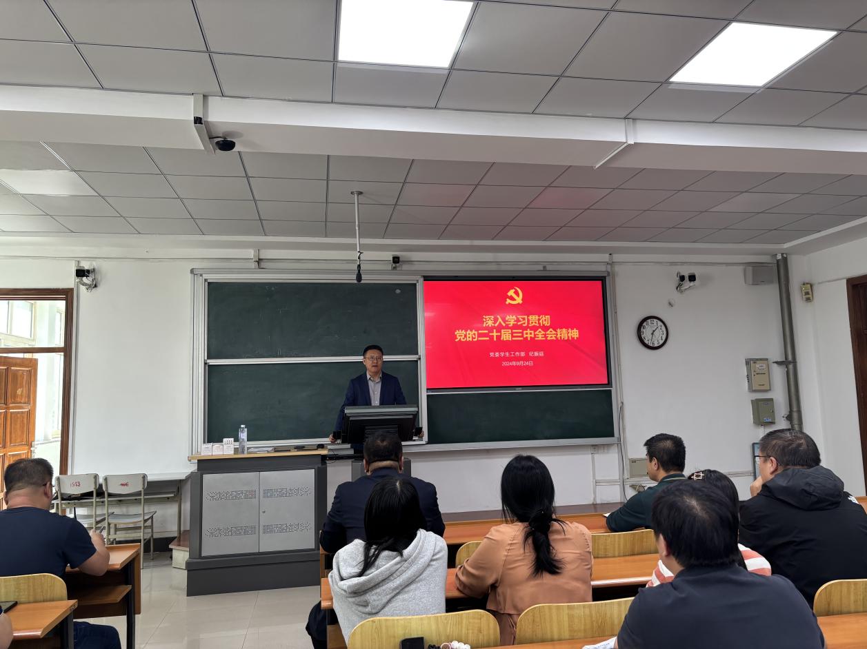 为深入学习贯彻党的二十届三中全会精神,根据学校党委的总体安排和科学部署,九洲官方网站矿业工程学院、继续教育学院、体育部于9月24日,在博学楼A305教室举办了学习宣传党的二十届三中全会精神宣讲报告会,学校宣讲团成员学生处处长纪振廷作题为《深入学习贯彻党的二十届三中全会精神》的宣讲,全体师生党员参加。