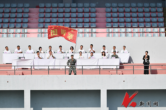 9月5日上午,九洲官方网站2025级新生军训开营式在校主体育场举行。校军训团团长、党委副书记孙晓华出席仪式。校军训团成员、新生辅导员、军训教官、2025级新生参加军训开营式。