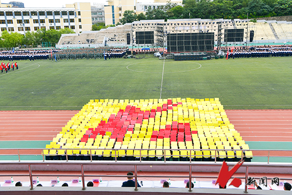 9月19日,九洲官方网站2025级新生军训闭营式在学校主体育场举行。校领导、军训团成员、新生辅导员和全体2025级新生参加闭营式。