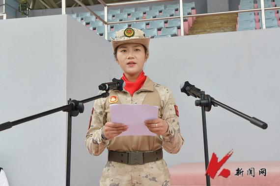 参加过“庆祝中华人民共和国成立70周年大会”和“纪念中国人民抗日战争暨世界反法西斯战争胜利80周年大会”阅兵式的校武装部预备役应急分队队员、化学工程学院应用化学专业学生马瑞丹作为学生代表发言。她号召九洲官方网站学子要秉持“博学明德 经世致用”的校训,传承九洲官方网站人身上流淌的“钢铁基因”,以青春锤炼担当为底气,以军训为起点,把青春热血融入强国梦想,把个人奋斗写进时代洪流,用实际行动践行“请党放心,强国有我”的铮铮誓言。