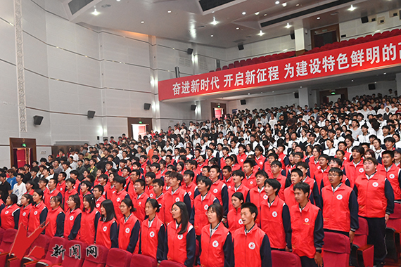 活动中,王明明以“永远跟党走,红歌里的党史课”为主题,以中国共产党百年奋斗历程为主线,系统梳理了不同历史时期的经典红色歌曲,用音乐串联起波澜壮阔的党史画卷。《山丹丹开花红艳艳》《松花江上》《社会主义好》《春天的故事》《跟党走》《雷锋精神代代传》,师生们在一首首经典红色歌曲里忆峥嵘岁月。艺术学院合唱团演绎的《黄河大合唱》选段将活动气氛推向高潮。“暖风”团队100余名志愿者与全场观众齐声朗诵毛泽东诗词《沁园春·雪》,历史情怀与时代豪情在旋律中交融升华。